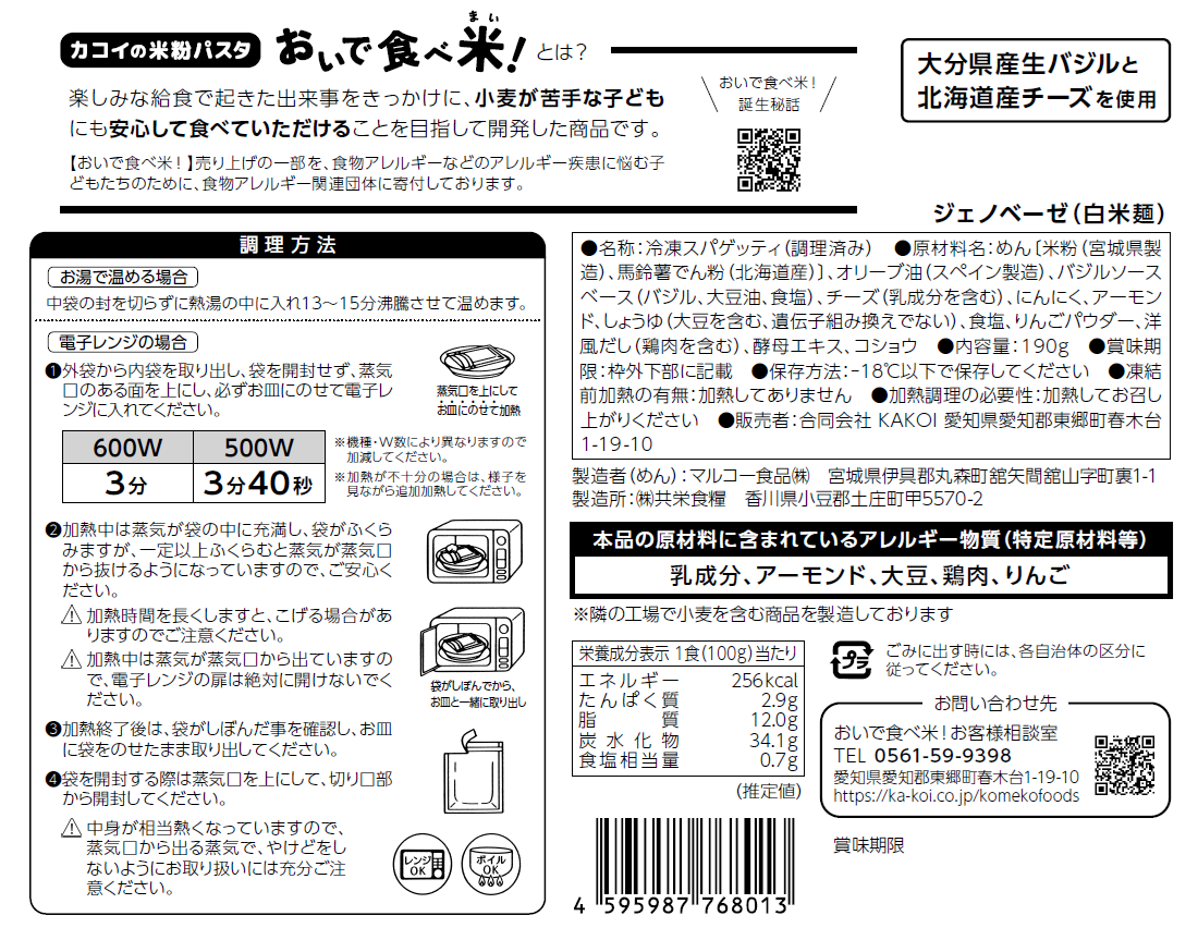 ジェノベーゼ:乳成分、アーモンド、大豆、鶏肉、りんご